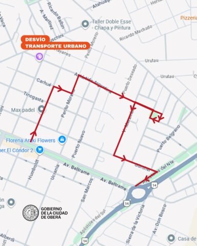 A raíz de esta intervención, el transporte público urbano modificará de manera provisoria su recorrido habitual. En los esquemas difundidos por el municipio se detallan tanto la zona intervenida como el desvío dispuesto para los colectivos durante el período de obra.