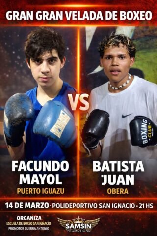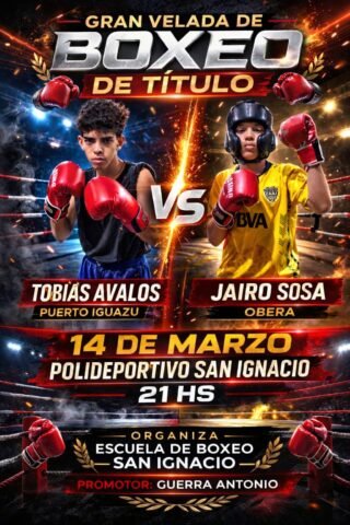 La cita será en el Polideportivo San Ignacio, desde las 21, en una noche organizada por la Escuela de Boxeo San Ignacio, con promoción de Guerra Antonio. En la cartelera aparecen varios cruces destacados, entre ellos los protagonizados por deportistas de Oberá frente a rivales de Puerto Iguazú y Garupá.