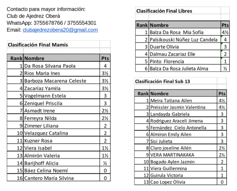 Un homenaje con el corazón de manera muy especial, el Club de Ajedrez Oberá desea agradecer la presencia de los familiares de Norma Clark. Su acompañamiento no solo honra la memoria de quien fuera una figura fundamental para nuestro ajedrez, sino que también inspira a las nuevas generaciones de jugadoras a seguir su legado con la misma pasión.