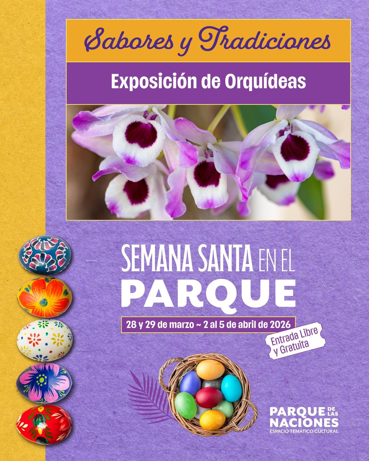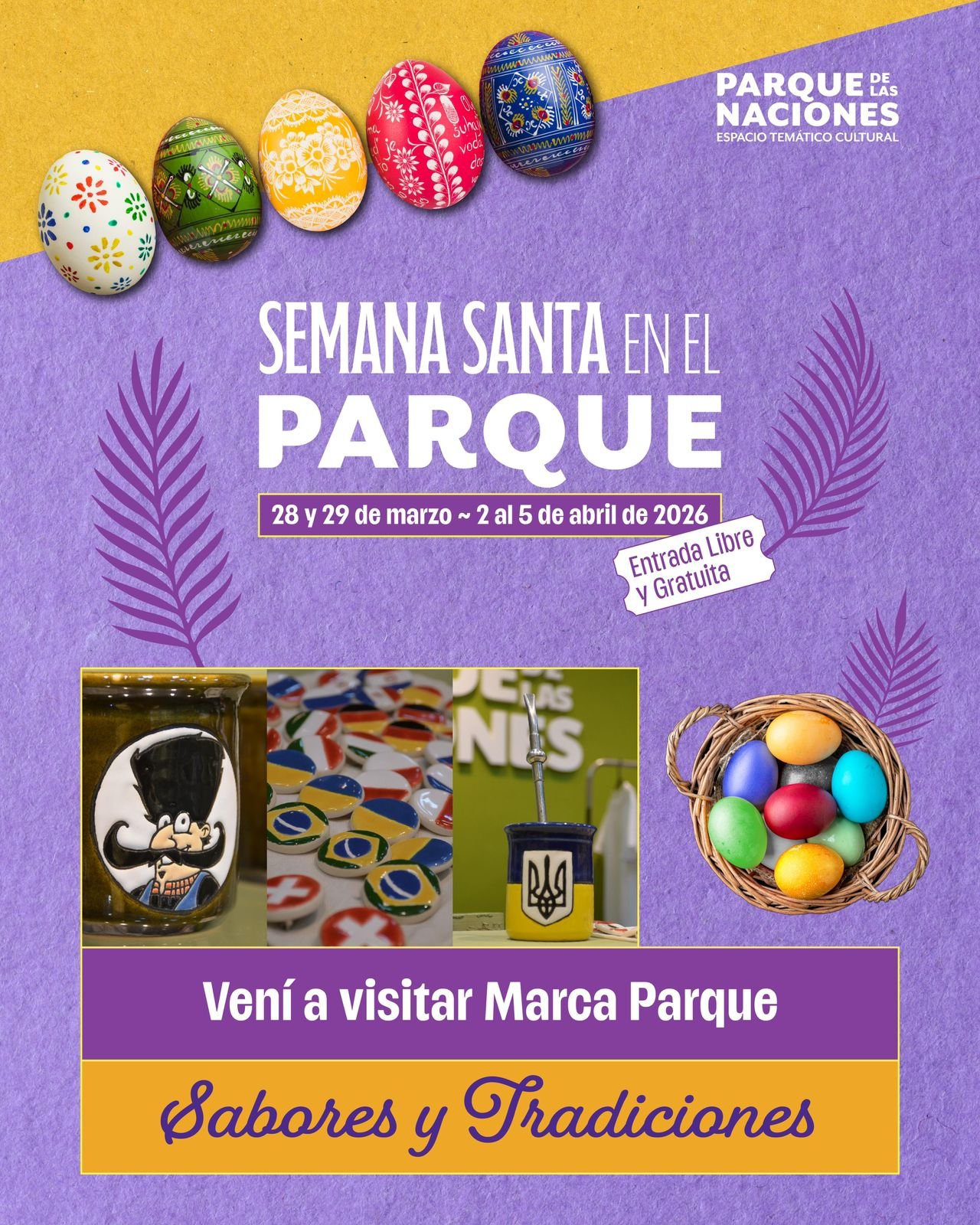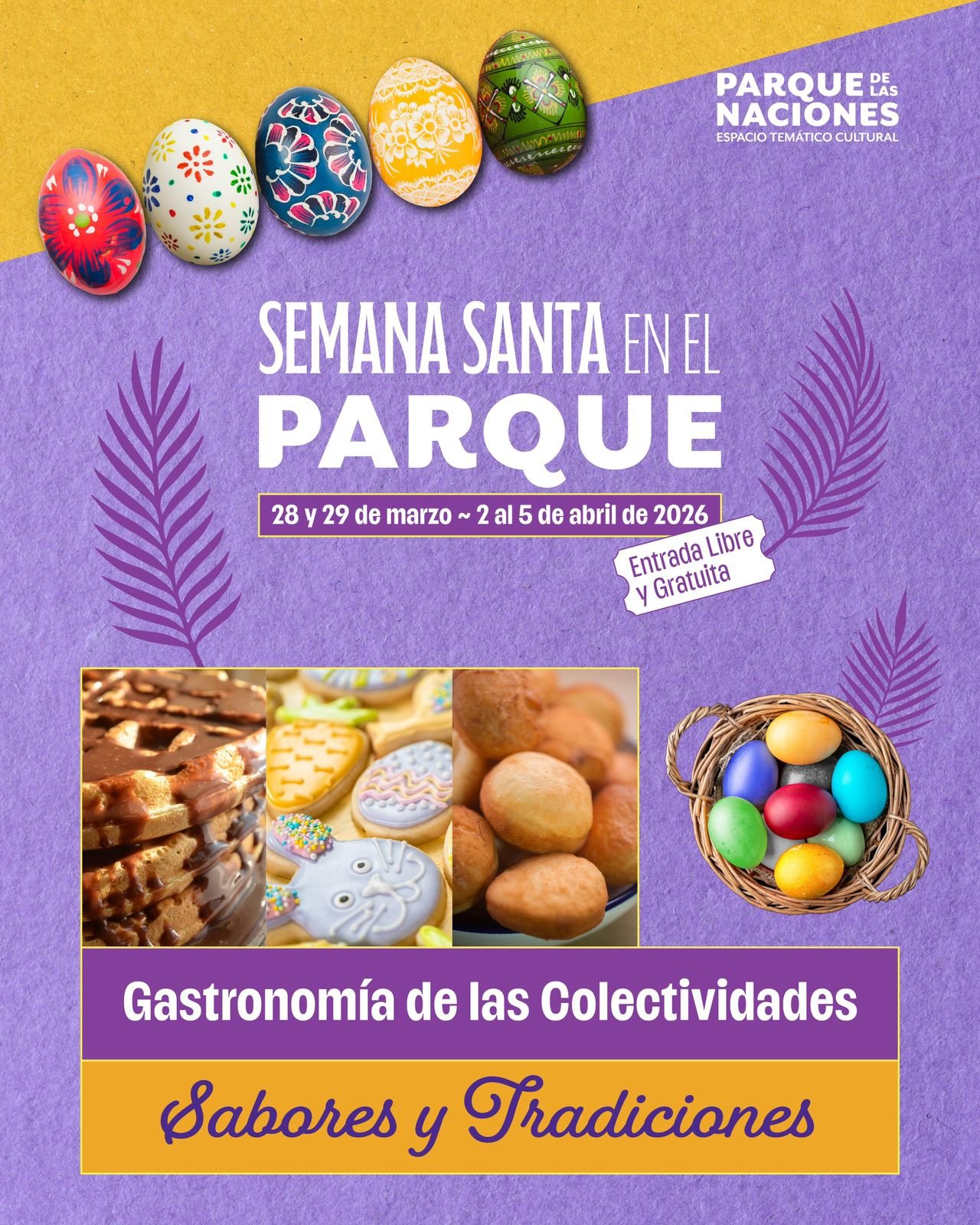 Federación de Colectividades anuncia el programa oficial para la celebración de Semana Santa 2026, a llevarse a cabo en el Parque de las Naciones, espacio temático y cultural de referencia. Bajo el lema «Sabores y Tradiciones», el evento se desarrollará en dos bloques: el 28 y 29 de marzo, y retomando del 2 al 5 de abril. Con entrada libre y gratuita, la propuesta busca reunir a las familias en torno a la cultura, la gastronomía y el arte.
