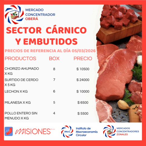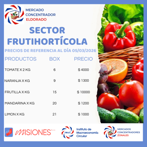 Los Mercados Concentradores Zonales mantienen su actividad en Oberá, Eldorado y Posadas, con propuestas en frutas y verduras de chacra, panificados, lácteos, carnes, embutidos, preelaborados y artesanías, en un esquema de comercialización que prioriza la venta sin intermediarios y la atención directa del productor, bajo la órbita del Instituto de Macroeconomía Circular (IMaC) y el Gobierno de Misiones.