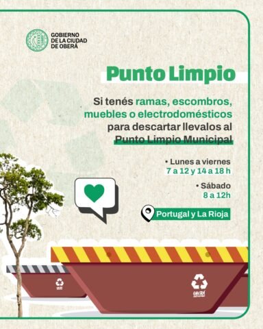 Quienes necesiten descartar ramas, escombros, muebles o electrodomésticos pueden llevarlos al Punto Limpio Municipal, ubicado en Portugal y La Rioja. Este espacio funciona de lunes a viernes de 7 a 12 y de 14 a 18 horas, y los sábados de 8 a 12 horas.