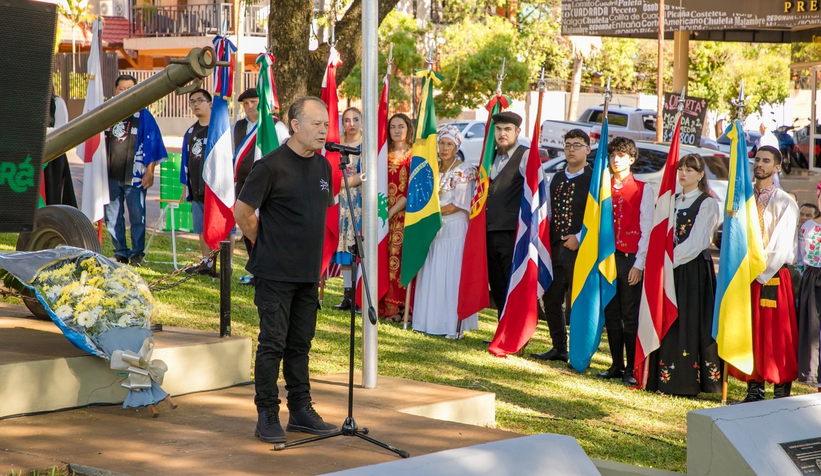 La jornada incluyó además la presentación de la muestra fotográfica “Malvinas, sentimiento eterno”, sumando un componente visual y testimonial a la conmemoración. Desde la organización destacaron la presencia de las paisanas del Centro Cultural Argentino, de abanderados de colectividades y de integrantes de las fuerzas de seguridad, en una ceremonia que volvió a reunir a Oberá en torno al honor, la memoria y el reconocimiento permanente a los héroes de Malvinas.