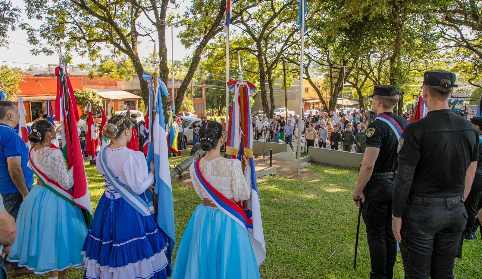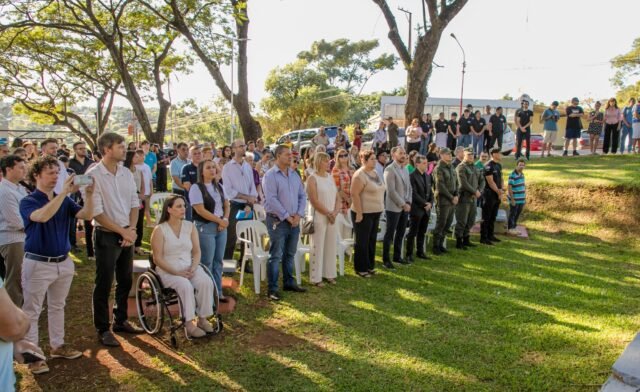 Durante la ceremonia se entonaron las estrofas del Himno Nacional Argentino y de “Misionerita”, la canción oficial de la provincia. También se realizó un minuto de silencio en memoria de los caídos, en un clima de respeto y recogimiento, mientras que estudiantes del nivel secundario participaron con redacciones alusivas en homenaje a los veteranos de guerra. El cierre estuvo marcado por la Marcha de las Malvinas.