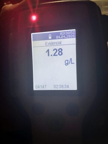 Durante el procedimiento se hizo presente personal de Seguridad Vial junto a la comisaría jurisdiccional, quienes labraron el acta de infracción correspondiente. Asimismo, se le practicó el test de alcoholemia, el cual arrojó resultado positivo de 1,28 gramos de alcohol por litro de sangre.