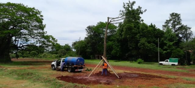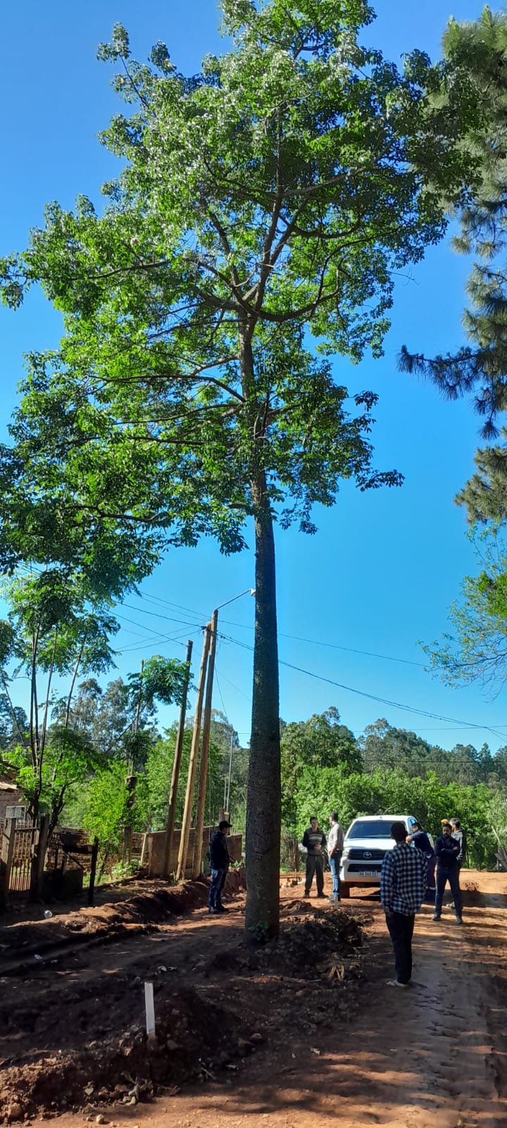 Una vez en el nuevo sitio, el ejemplar fue implantado con asistencia mecánica, incorporando sustrato y fertilización mineral. Posteriormente, se realizó un riego profundo y se colocaron anclajes para garantizar su estabilidad.