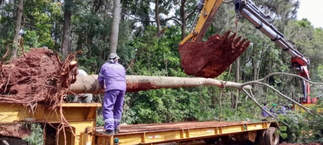 El Municipio llevó adelante el trasplante de un ejemplar adulto de palo borracho (Ceiba speciosa), mediante un operativo planificado y coordinado entre distintas áreas.