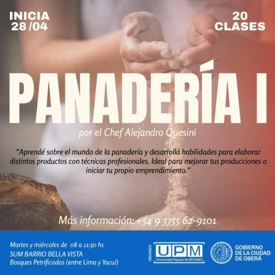 El Gobierno de la ciudad de Oberá en conjunto con la Universidad Popular de Misiones, ofrece la primera parte de esta gran formación profesional en Panadería.