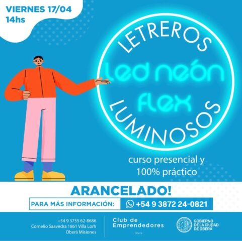 El Gobierno de la Ciudad de Oberá, a través del Club de Emprendedores, anunció la realización de dos nuevas capacitaciones destinadas a fortalecer habilidades y acompañar el crecimiento del sector emprendedor local. Las propuestas se llevarán a cabo el viernes 17 de abril en la sede ubicada sobre Cornelio Saavedra 1861, en Villa Lohr.