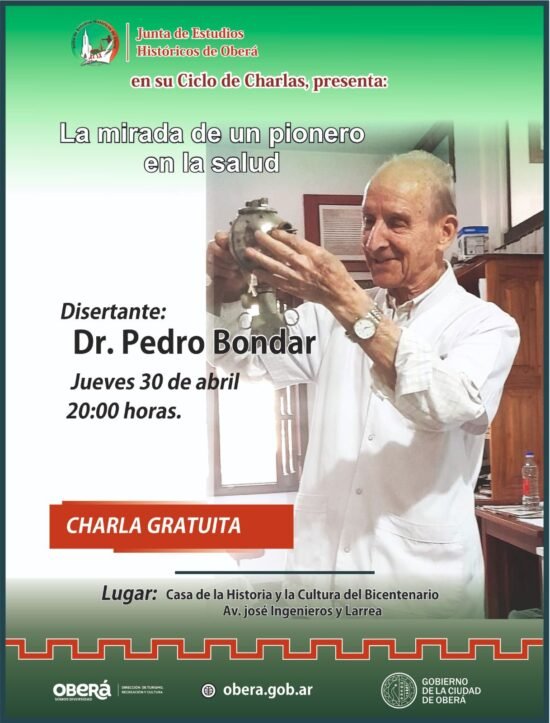 Bajo el título «La mirada de un pionero en la salud», el reconocido profesional compartirá sus vivencias sobre una época donde ejercer la medicina en Misiones era una verdadera gesta. Bondar repasará aquellos tiempos donde, ante la falta de tecnología y recursos modernos, la sapiencia, el instinto y la entrega personal eran las únicas herramientas disponibles para salvar vidas.