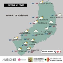 La semana arranca en Misiones con condiciones variables del tiempo, predominio de nubosidad y algunas lluvias aisladas en el norte provincial, aunque con tendencia a una mejora paulatina hacia el martes en las zonas sur y centro. Las temperaturas se mantendrán dentro de rangos templados, con mañanas frescas y tardes…