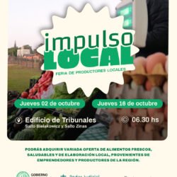 La próxima feria en el edificio de Tribunales se realizará el jueves 2 de octubre desde las 6:30 de la mañana. La actividad tiene como objetivo acercar una variada oferta de alimentos frescos, saludables y de elaboración local en ese sector de la ciudad.