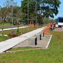 La Dirección de Urbanismo e Infraestructura lleva adelante la construcción de un sendero podotáctil sobre las plazoletas de avenida Gendarmería Nacional, además, de senderos para una movilidad activa.
