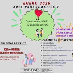 La propuesta del Área Programática X se realizará el miércoles 28 de enero, de 7 a 13, en el Barrio Nuevo del Km 0. Además de prestaciones médicas, permitirá completar la ficha médica escolar y gestiones vinculadas a ANSES.