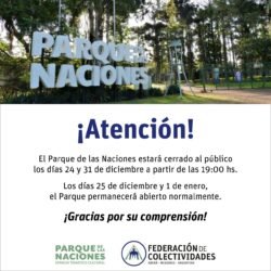 La Federación de Colectividades confirmó que el predio estará abierto de 6 a 23 horas todos los días para el disfrute de los obereños. Además, se detalló el esquema de cierre para este 31 de diciembre y el inicio del receso administrativo en la entidad.