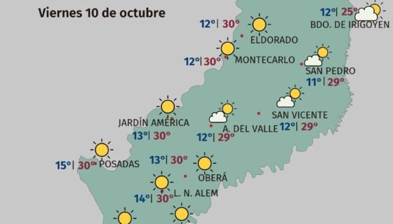 El viernes se presentará con tiempo estable y temperaturas en ascenso, mientras que el sábado llegará el calor intenso y el domingo se prevén lluvias y tormentas fuertes en gran parte de la provincia.