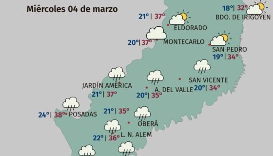 Entre el miércoles 4 y el viernes 6 de marzo se mantendrían condiciones mayormente estables, con temperaturas muy elevadas por la tarde y lluvias puntuales de bajo acumulado, especialmente en sectores del centro, norte y sur.