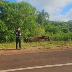 Este domingo por la mañana, un vehículo de Gendarmería Nacional protagonizó un siniestro vial sin lesionados en un camino vecinal de la zona de La Báscula, en la localidad de Los Helechos.