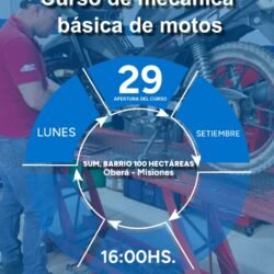 En el marco de un programa para el complemento productivo de la familia olera, el Gobierno de la Ciudad de Oberá y Ministerio de Industria, invitan a la población a sumarse al nuevo curso de mecánica y reparación de motos, dictado por la Universidad Popular de Misiones UPM.
