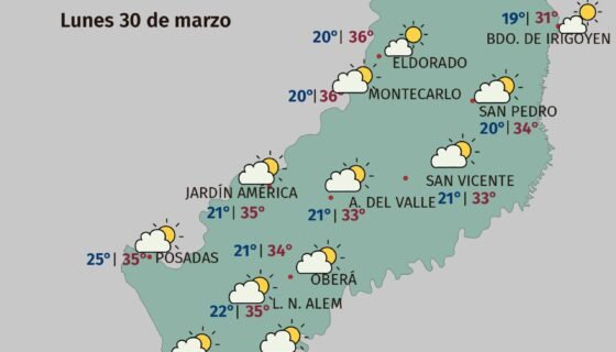 La provincia tendrá un lunes todavía caluroso y húmedo, aunque con señales de un cambio de masa de aire que comenzará a sentirse en los días siguientes. Para el martes y miércoles se prevé mayor inestabilidad, probables lluvias y tormentas, en el arranque de la Semana Santa.
